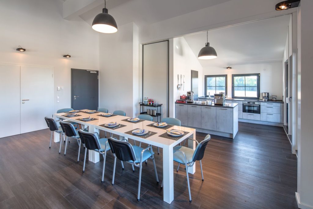 Eine gut ausgestattete Seminarküche mit Getränkelager rundet das Konzept ab.